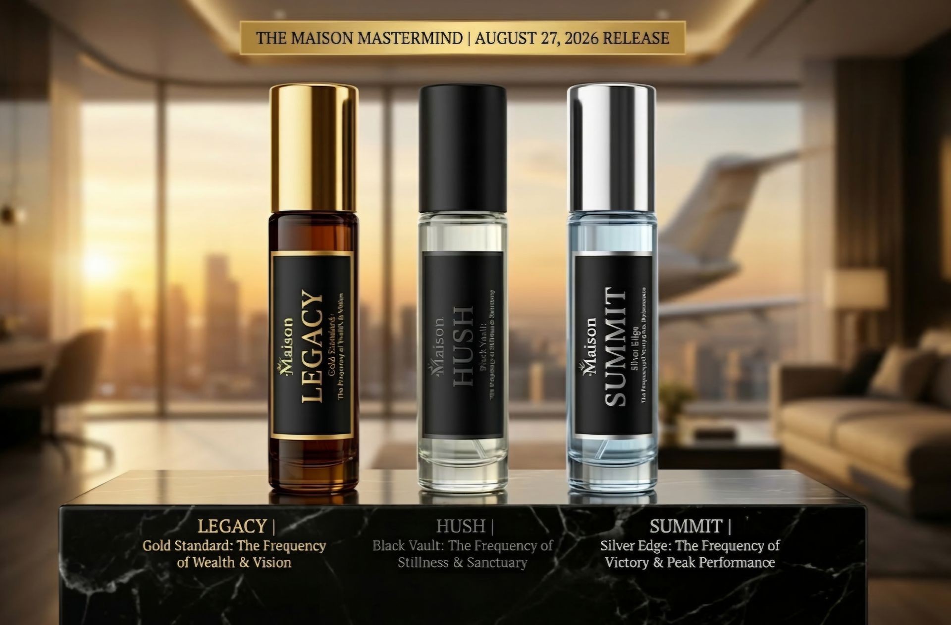 "True luxury is not just seen; it is felt. The Trinity Collection is a suite of three olfactory anchors designed for the sophisticated elite. This is sensory architecture for the woman who navigates the world with intention—from the boardroom to the sanctuary, and every business-class cabin in between."